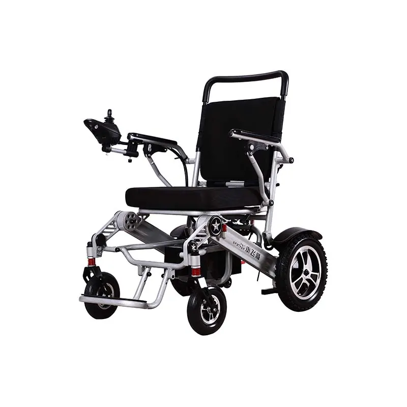Aluminum Alloy Lightweight Portable Adjustable Folding Motorized Electric Power Wheelchair, folding power wheelchair ,folding electric wheelchair ,motorisd electric wheelchair Experience the freedom to move without restrictions with our latest electric power wheelchair made with high-quality aviation-grade aluminum alloy. Our electric power wheelchair is designed to provide maximum comfort, durability, and safety to users. With a maximum weight capacity of 120 KG, you can trust our product to deliver a reliable and sturdy performance.One of the unique features of our power wheelchair is its electromagnetic brake system. This advanced feature ensures that the wheelchair stops immediately upon releasing the joystick. This not only eliminates the risk of backsliding or slipping on steep slopes but also ensures maximum safety for the user.